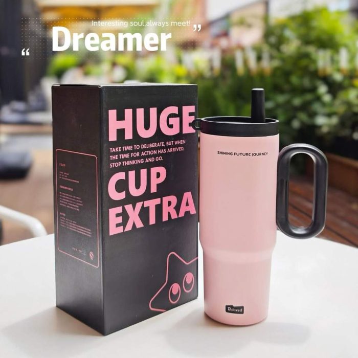 316 স্টেইনলেস স্টিল বড় ধারণক্ষমতার থার্মোস কাপ – হ্যান্ডেল ও স্ট্র সহ